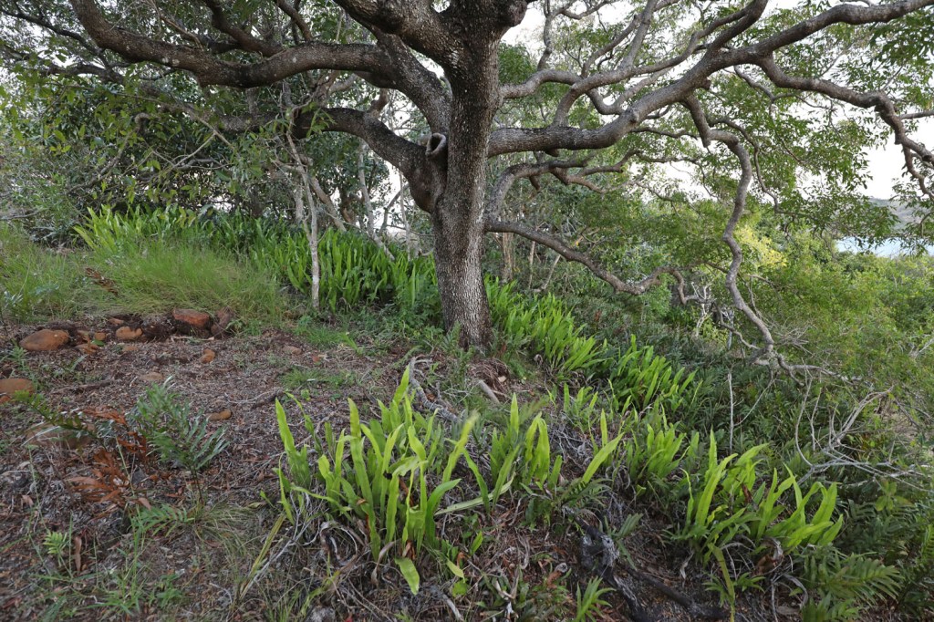 The track to the top of the southern plug through vine forest with large fig trees and a fern understorey.
