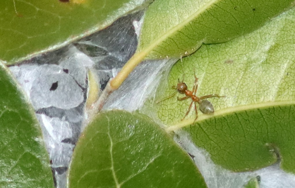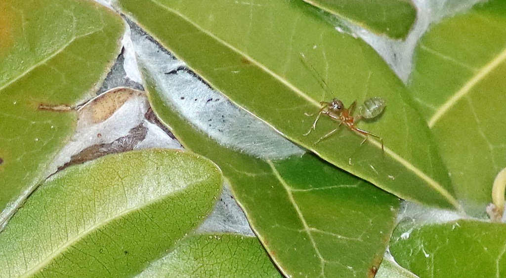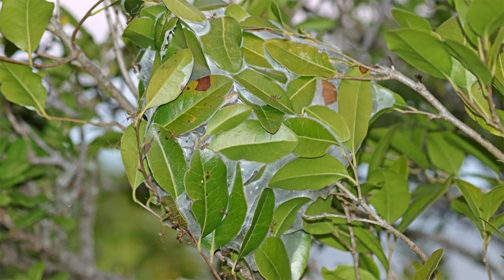 Green tree ants make use siky thread to pull leaves into a ball to make their nests.