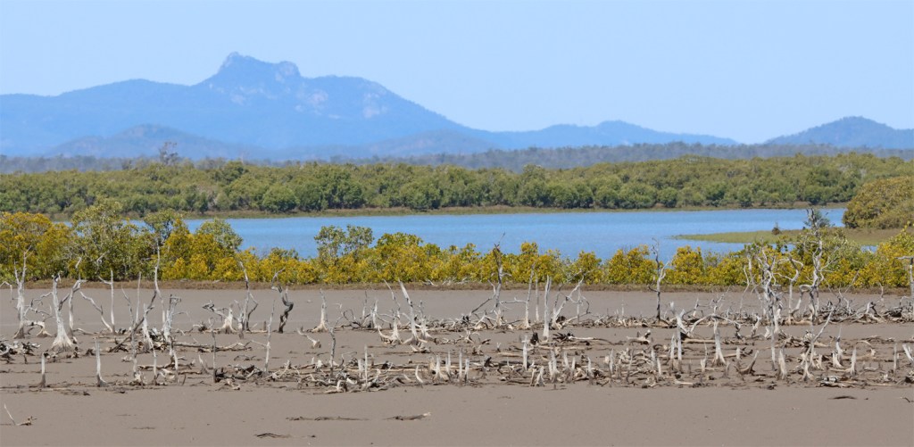 I have driven past the turnoff to Port Curtis for over 40 years and never ventured there off the Bruce Highway. Today seemed the perfect day to check it out. The road follows a low causeway across salt pans both natural and constucted for the salt industry.