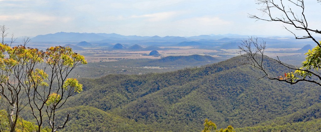 The view north east towards the mountains of Shoalwater Bay. Volcanic plugs can be see in the middle distance.