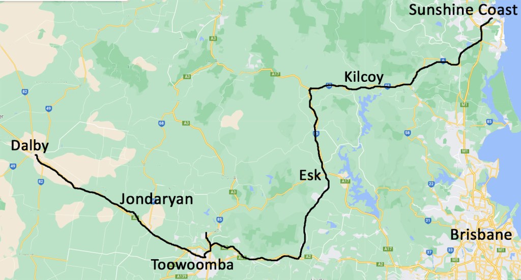 Today was a well known path from the Sunshine Coast to Dalby visiting Toowoomba en route.