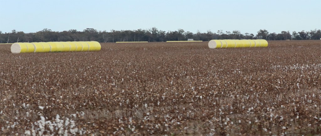There is huge amount of cotton grown in the central west. Bales are everywhere in the fields and on large trucks. Two local boll weevils grew up together here – one was noted for its massive rostrum and strength while the other faded into obscurity – it was the lesser of two weevils. (Thanks to Russell Crowe for this one).