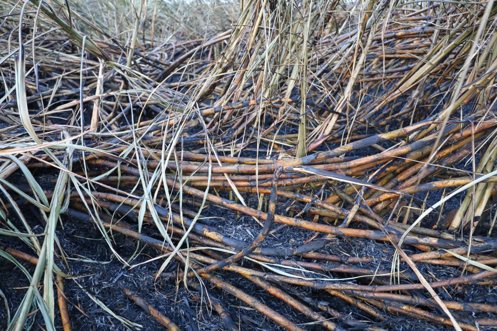 Burnt sugar cane ready for harvesting. Cane be cut burnt or green. Before the 1940s, all sugar cane was hand cut green. After a severe and sometimes fatal disease affected cane cutters (Leptospirosis carried and passed on by rats), most farms adopted burning to remove the rodents. That really backfired on the rats. The sugar cane cutters said, “Revenge is sweet.” With mechanical cultivators and harvesters, now about 85% of harvested cane in Qld is cut green.