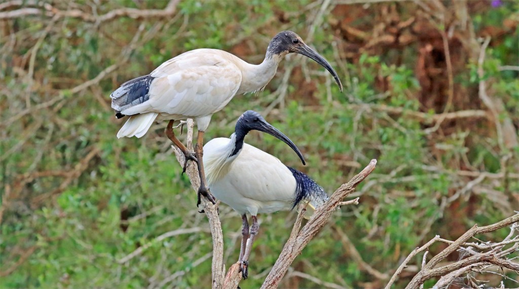 Sacred ibis in their natural habitat lamenting the lack of bins in the reserve.