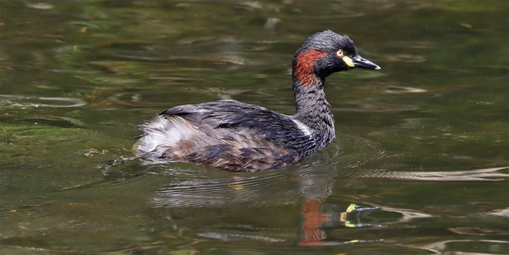 The Australasian grebe has a broad diet that includes a range of fish, aquatic invertebrates and occasional small frogs. It inflicts grebe-ous bodily harm on its prey.
