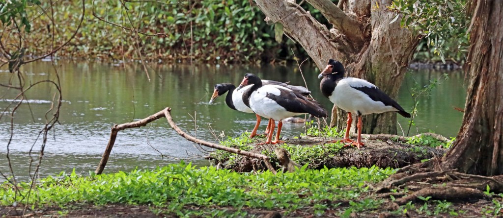 Magpie geese enjoying the winter sun at Baldwin Swamp – males have a larger bump on their head as they get older – they get goosebumps.