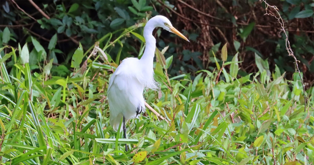 An Intermediate egret – because of its tuft of feathers, some people call it Plumed egret but that isn’t its real name, it’s only a Nom de Plume.