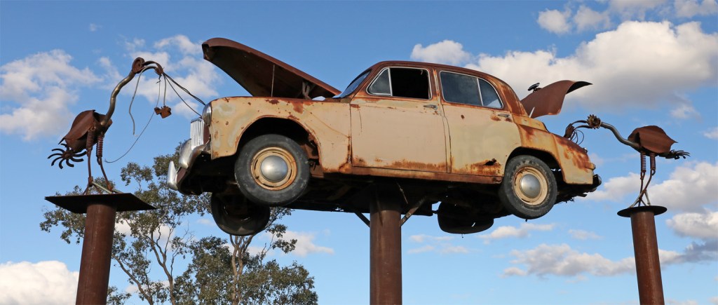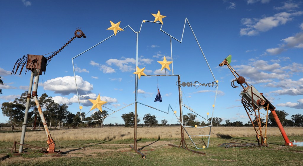Just outside Goondiwindi is a roadside sculpture park. The centrepiece is the Coat Of Arms.