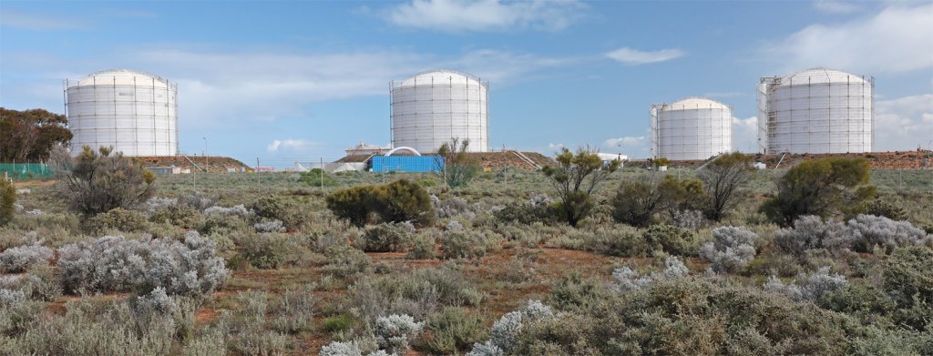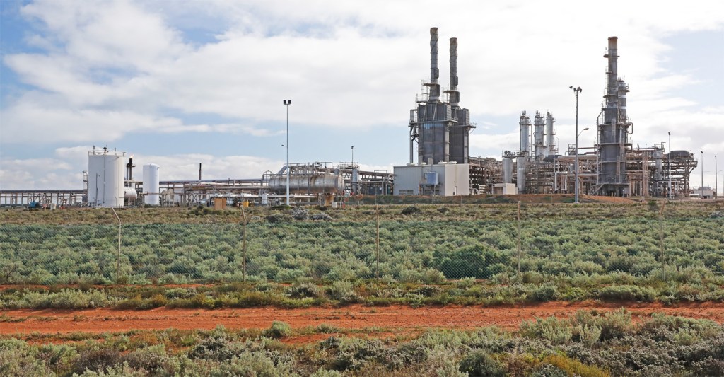The LPG works at Port Bonython processes liquid hydrocarbons from the Cooper/Eromanga basins. The mixture of crude oil and natural gas liquids is pumped through a 659km pipeline from Moomba.