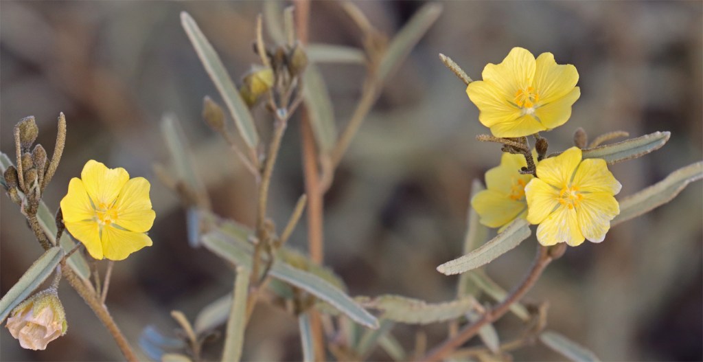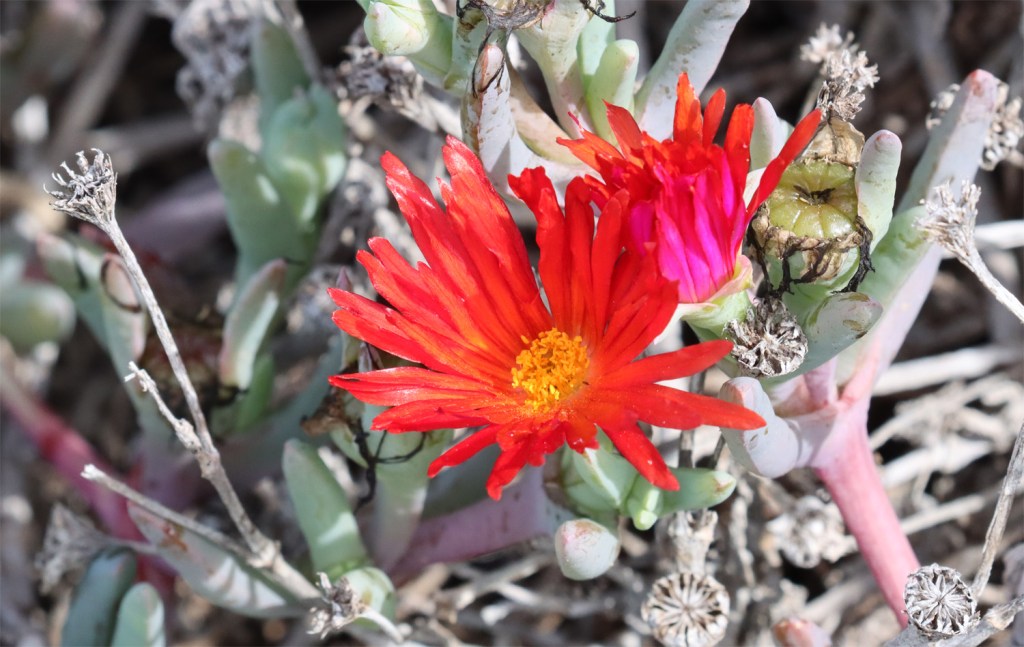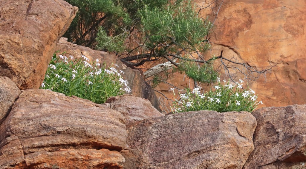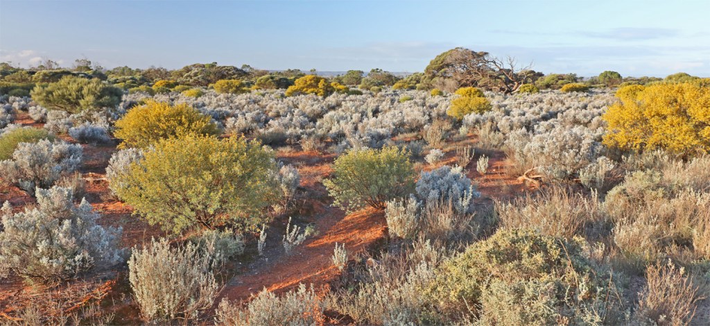 Red native hopbush, yellow Sida and Saltbush add a lot of colour