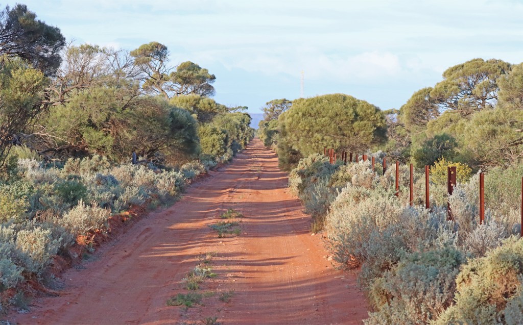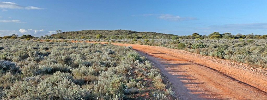 The road runs west from the highway for 7km then approaches Wild Dog Hill from the south.