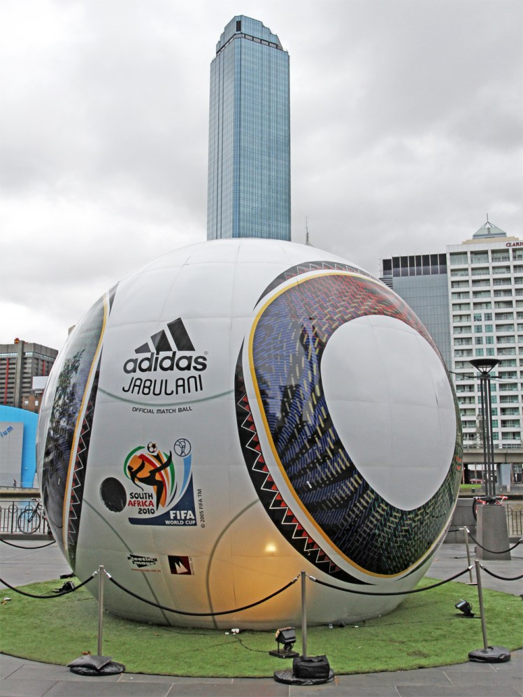 Big Soccer ball at Southbank in Melbourne in 2010 promoting the 2010 World Cup (probably no longer there)