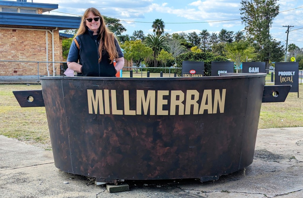We stopped at Millmerran on our way home last year and photographed this metal object which I called a bucket at the time (there was no accompanying sign). I have since found out it is the Big Camp Oven as Millmerran is the host site for the Australian Camp Oven Festival every October. At the festival, some people tried to cook with reduced coals in their fire but it turned out to be a half baked idea.