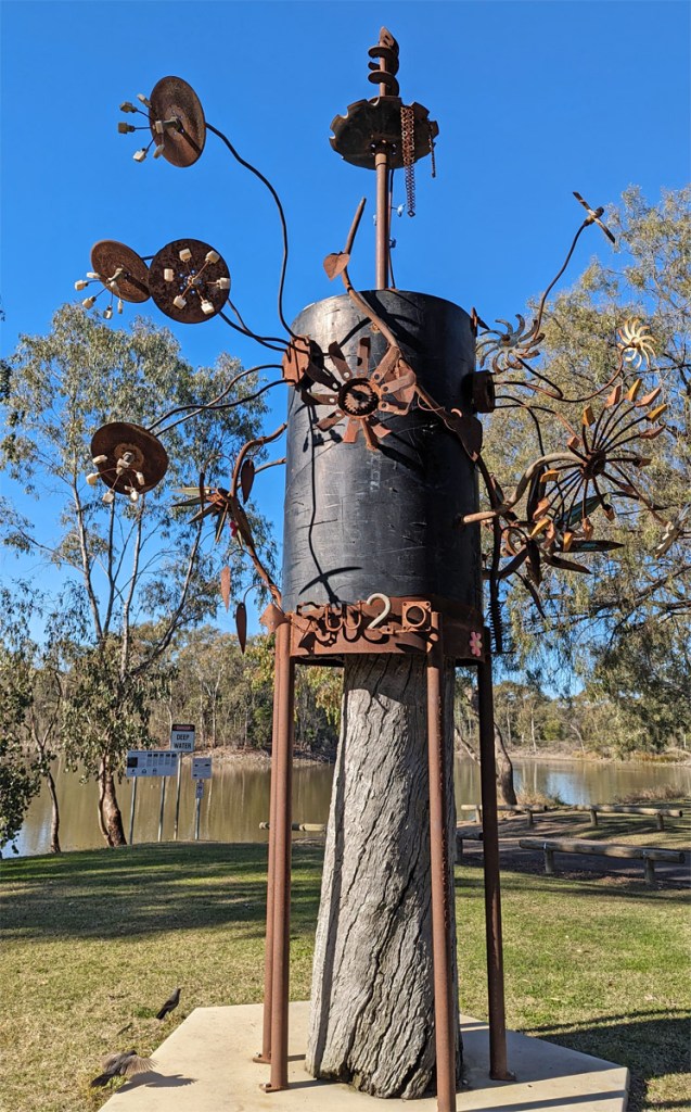 These Indigenous Art carvings are in a local park at Moree. There are several highlighting the animals on Country. The second image is a representation of Aboriginal camps linked by waterways.