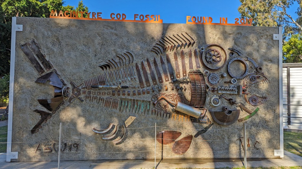 The MacIntyre Cod Fossil Sculpture at Goondiwindi – it has great sedimental value.