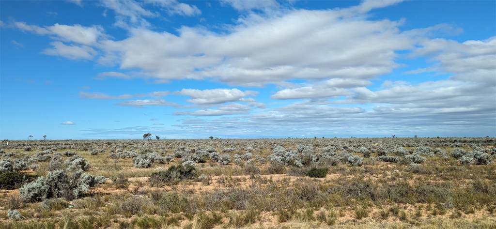 It was mostly sunny but around lunchtime a cold south-west change dropped the temperature from 21 to 10 degrees as we approached Balladonia.