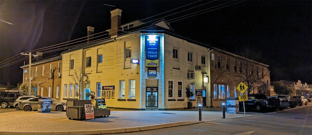 Overnighting in Corrigin; this is the Corrigin Hotel, our dinner venue.