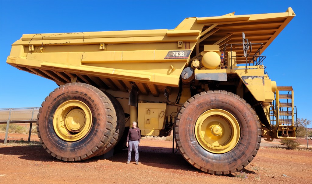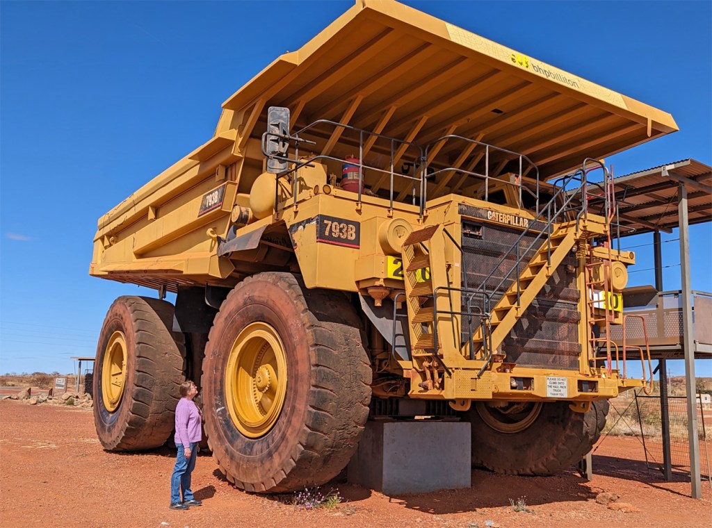 Haul truck 793B at the entrance to Newman – this model has a Caterpillar Diesel engine with 16 cylinder quad turbocharger with 1611KW of power.