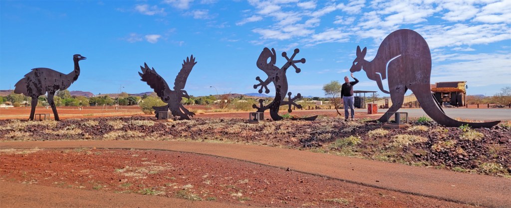 Welcoming creatures at the town entrance. Everything is big in Newman.
