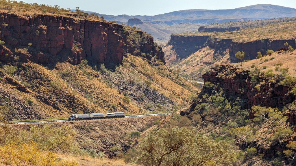 Today we travelled 420km on the Great Northern Highway to Port Hedland. The title should have read, “Trucks, trucks and more trucks.”
