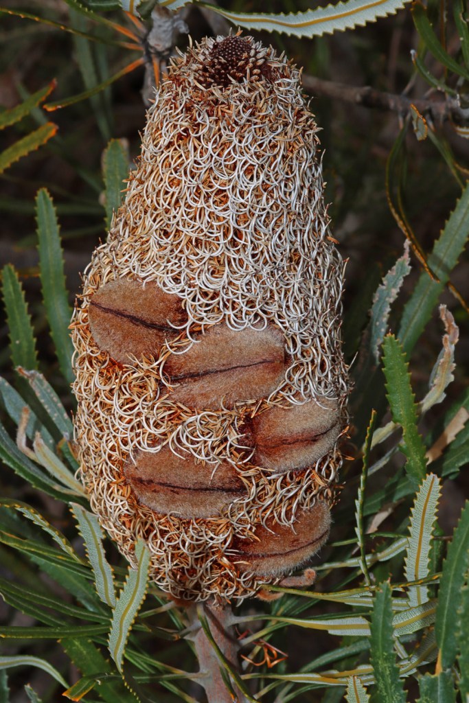 Gumnuts – food source of Carnaby’s cockatoos. The endangered Carnaby’s Cockatoo is among the 122 species of native bird found in the park. We saw two flocks of Carnaby’s fly past with their white patches on the sides of their heads.