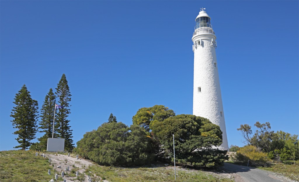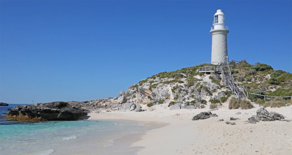 Wadjemup Lighthouse is central on the island on a high point. Wadjemup is the Noongar word – place across the sea.