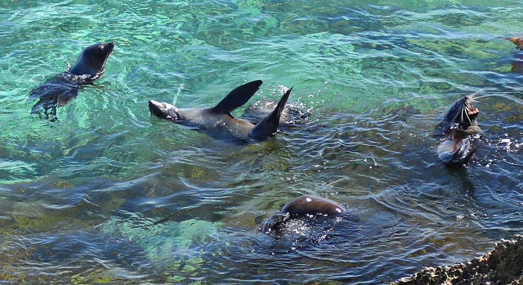 Cathedral Rock is the local seal hangout. They are predated by great white sharks in the ocean.