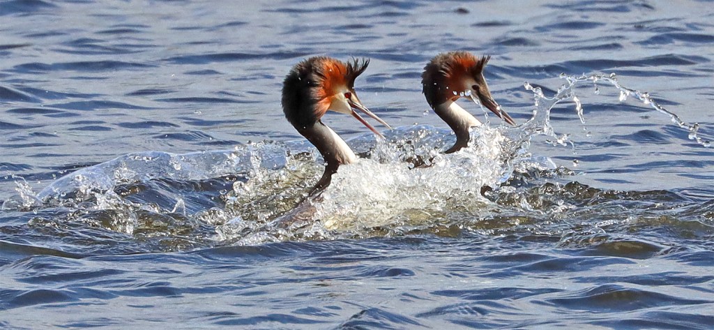 The Great crested grebes were performing mating rituals on the lake which involved splashing…