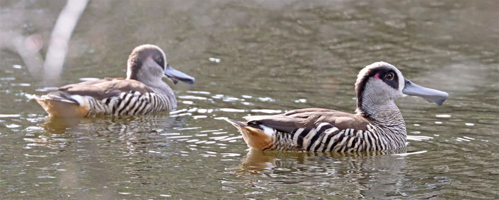 Pink-eared Ducks have odd-shaped bills, evolved to feed in a specialised manner: water is sucked through the bill-tip, then expelled through grooves along the side of the bill, filtering out tiny invertebrates in the process. (Birdlife Australia)