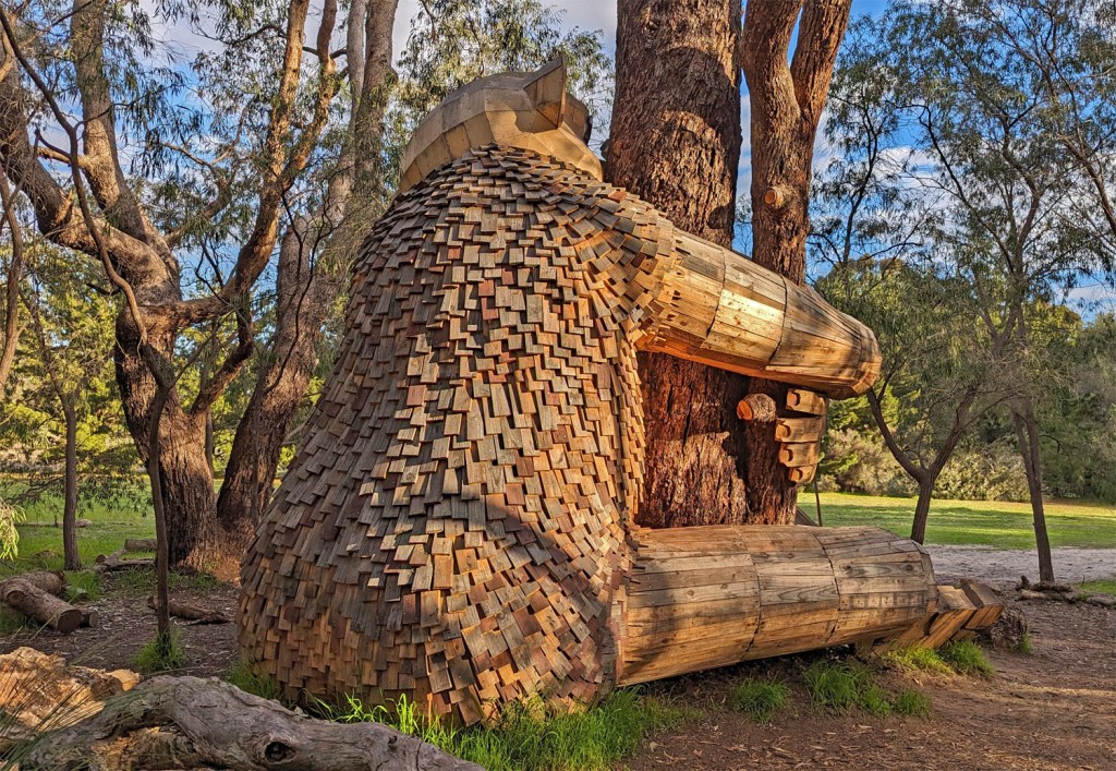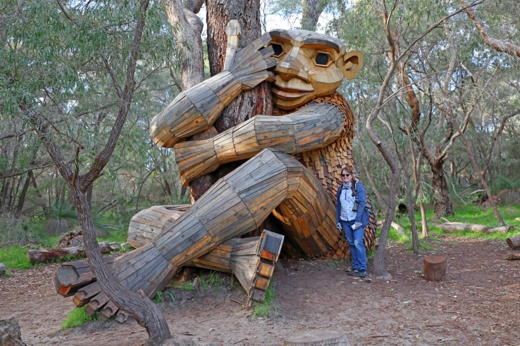 …and just outside the national park was a giant. This is Fyttes Hytte, one of the Giants of Mandurah – a series of sculptures throughout the area. This young woman wasn’t scared of the giant but some people are – they suffer from FeeFiPho-bia.