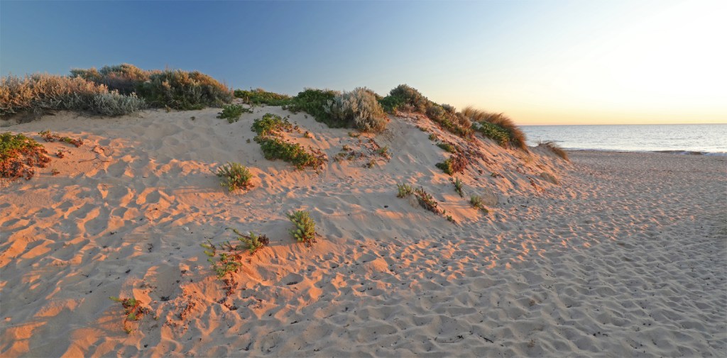 Lake Clifton thrombolites in Yalgorup National Park. For those afraid to ask, thrombolites are “clotted accretionary structures formed in shallow water by the trapping, binding, and cementation of sedimentary grains by biofilms of microorganisms, especially cyanobacteria!” They are similar to stromatolites from Shark Bay but the layers and clumps of sediment and microorganisms are much larger and visible to the naked eye. They may look inert but the stromatolites and thrombolites produced huge amounts of oxygen that supported the development of life on earth. Before cyanobacteria the air was only 1% oxygen. Then, for 2 billion years, photosynthesising Stromatolites pumped oxygen into the oceans. When the oceans’ waters were saturated, oxygen was released into the air, and with around 20% of oxygen in the air, life on land began to thrive.