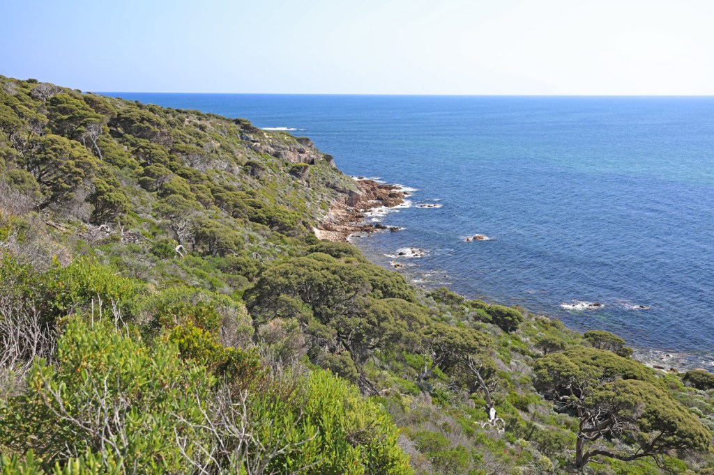 View from Whale lookout to the tip of Cape Naturaliste. The first peoples here were the Wardandi who called it “Kwirreejeenungup”, meaning “the place with the beautiful view”. In 1801, the French navigator Nicolas Baudin named the cape after the expedition’s second ship the Naturaliste.