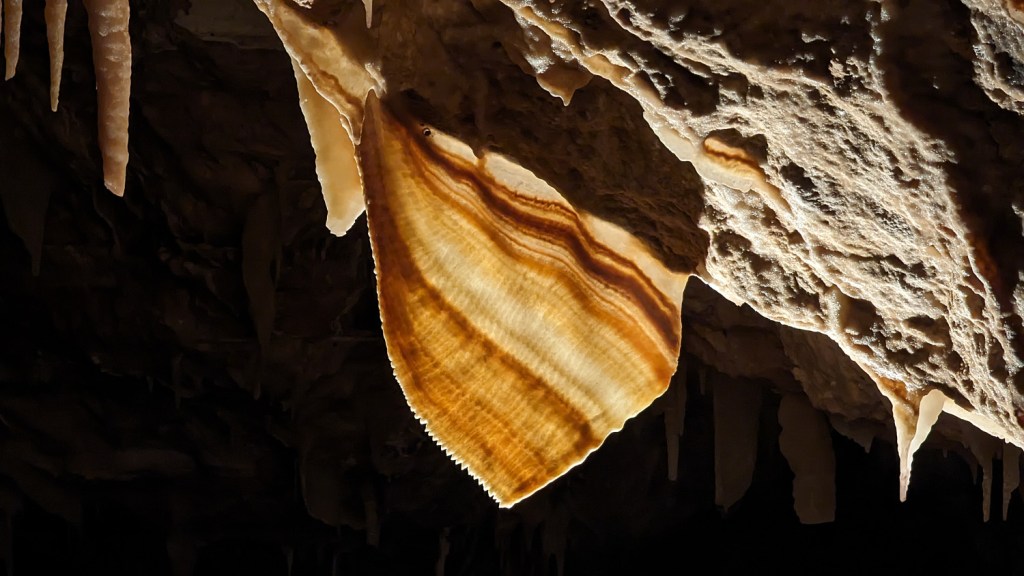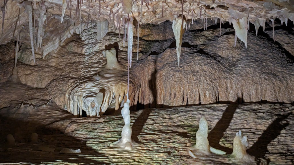 In this case, carbon dioxide. The cave CO2 levels are constantly monitored as they can rise. Atmospheric CO2 is about .04%. Levels in the cave can reach over .2% but today was about .09% which we were told was enough to produce a slightly elevated heart rate.