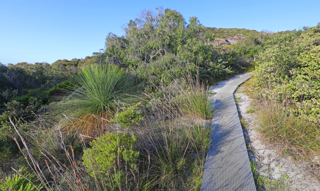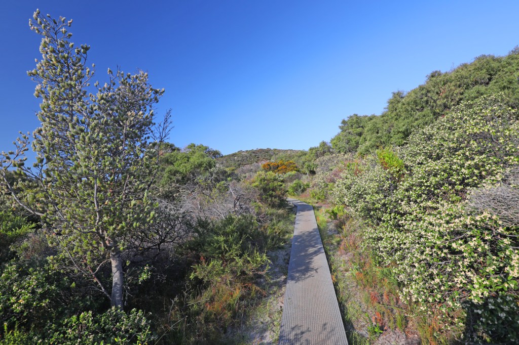 The elevated track prevents track erosion and minimises dieback which is devastating plants in the park. This is caused by Phytophera (a mould) attacking their roots. Boot cleaning stations are found at the start of many tracks.