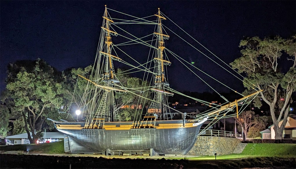 Exact sized replica of the Amity that brought the first European settlement to Albany in 1826.