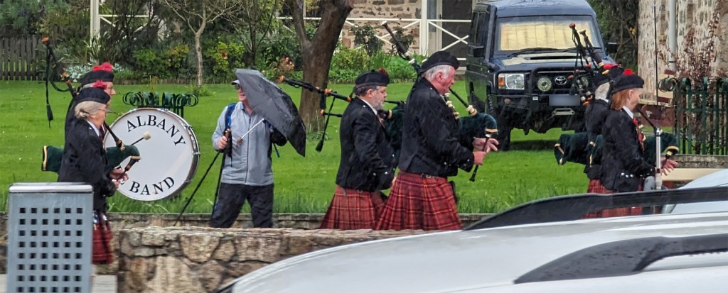 In a break in the weather we ventured into town and in the wet and windy conditions and found this band playing in the rain. These hardy folk don’t mind a wee bit of rain.