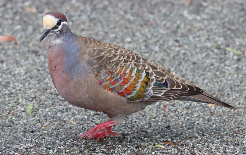 The morning started OK with birds such as this Common bronzewing patrolling the carpark at our accom. This beautiful native pigeon only feeds on the ground. Males have a bright yellow and white forehead.