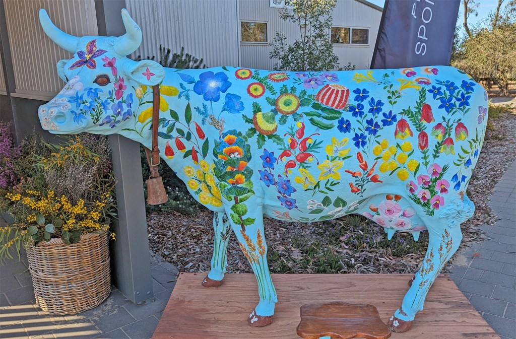 The Ravensthorpe Wildflower Festival was on in town so we took a look. This udderly-gorgeous cow greeted us at the door. It was planted here.