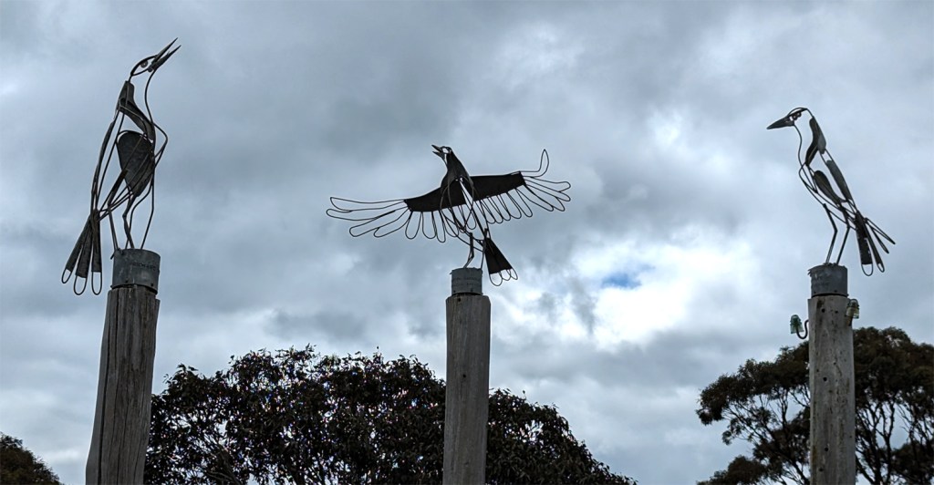 Borden has welcoming sculptures called The Magpie Flight Path.