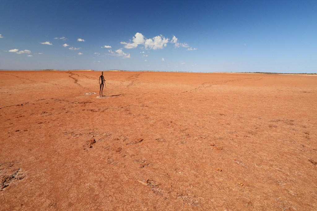 The Inside Australia art exhibition. In 2003, artist Antony Gormley installed 51 metal sculptures over an area of 10 square kilometres on the bed of the lake.