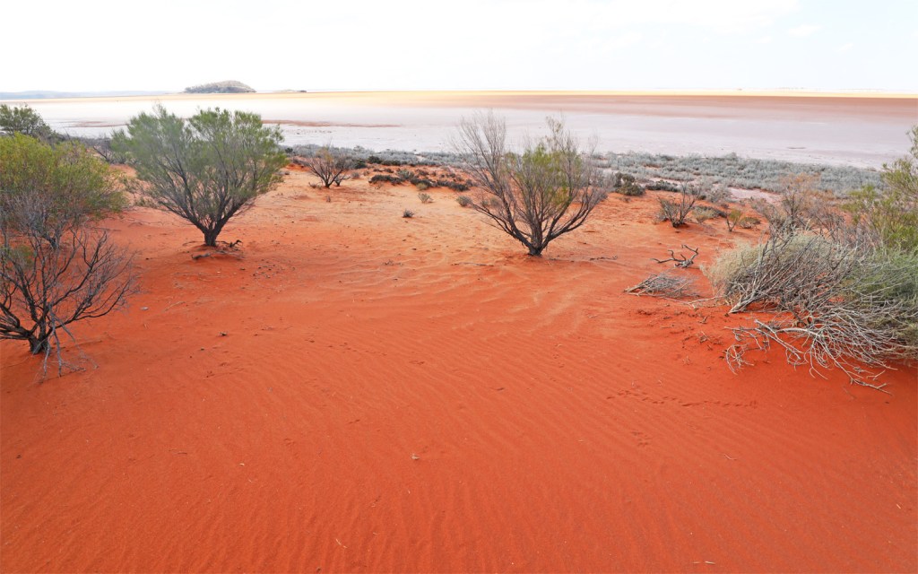 Lake Ballard is 185km north of Kalgoorlie. There are red dunes in the day use and camping area on the southern side of the lake.