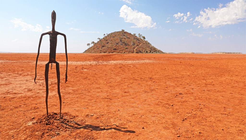 Today we head north into more arid country to a salt lake with sculptures.