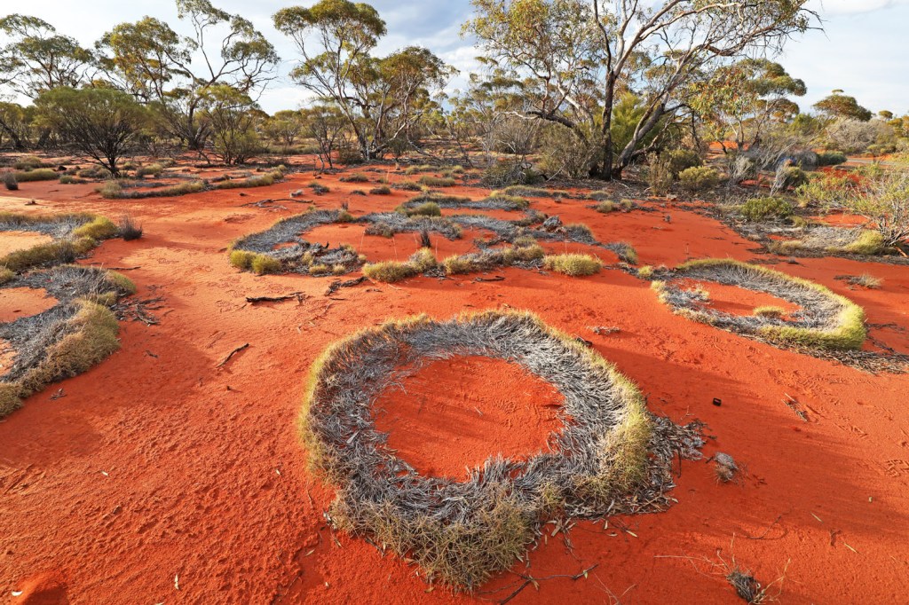 Spinifex grass growing outwards form rings and unusual shapes.