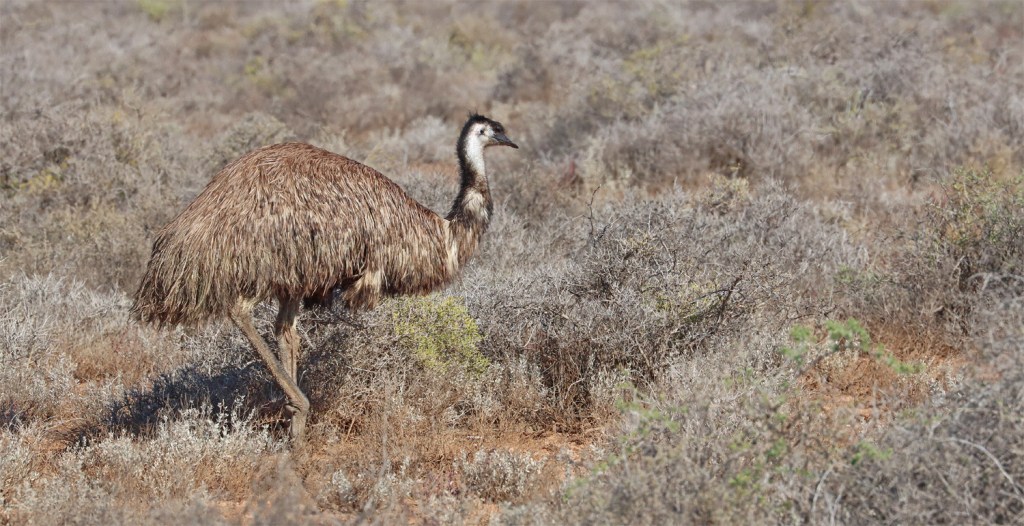 We see some emus near Mundrabilla.