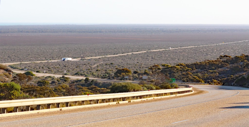 The Eyre Highway traverses the Roe Plain for 180km with the scarp in view to the north the entire way…