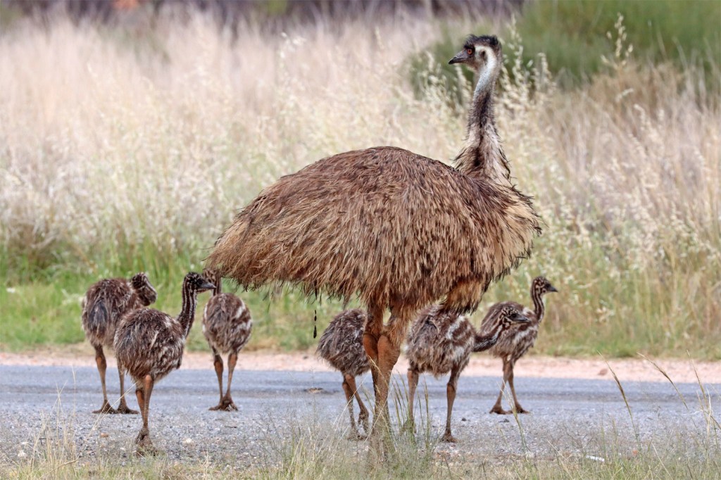 Emu father and chicks at Emmdale