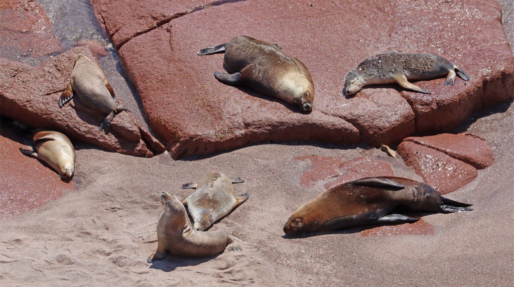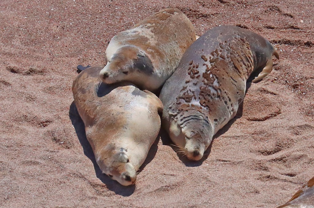 Australian sea lions rest after the arduous feeding in the ocean,