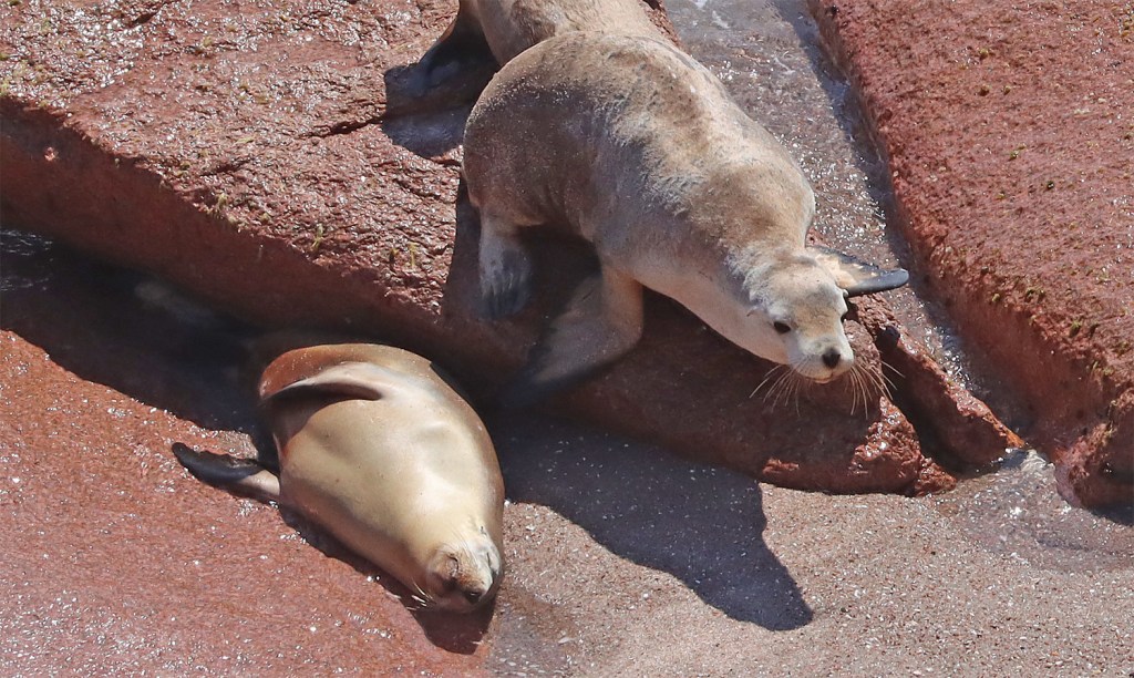 Sea lions emerge from the water and look for the best sleeping spot.