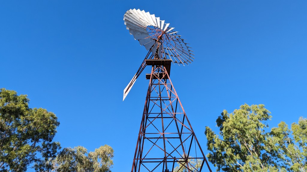 Springsure is a nice place and here is a big fan of the town. A windmill manufactured in 1935 by Williams metal fabricators. It was moved from a property into Springsure. The company manufactured the first QANTAS hanger at Longreach.