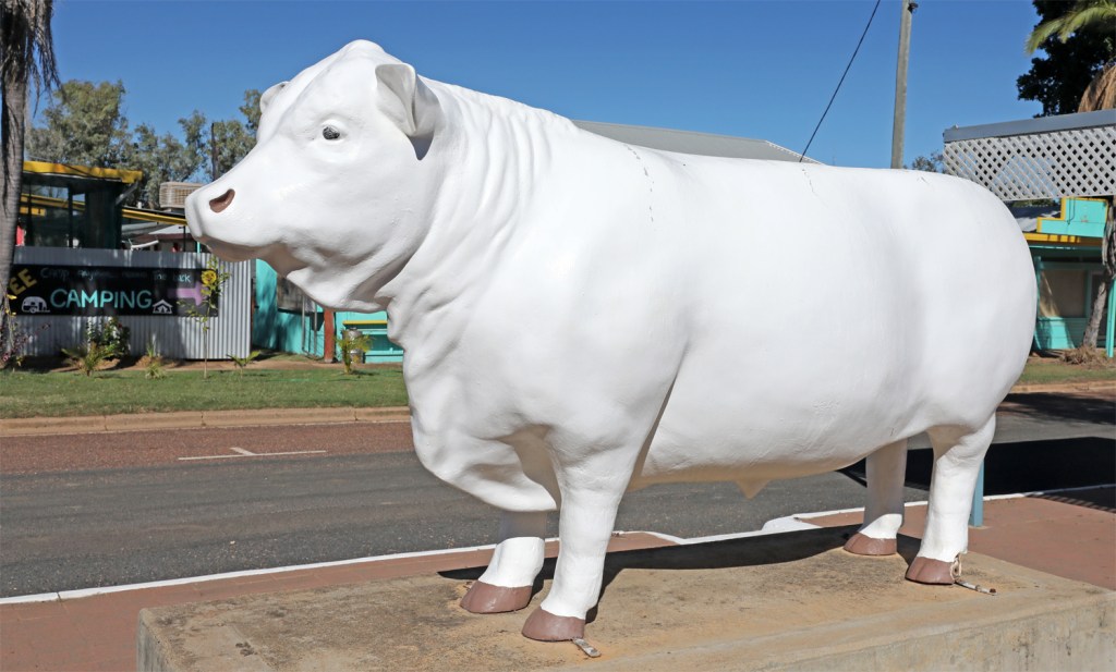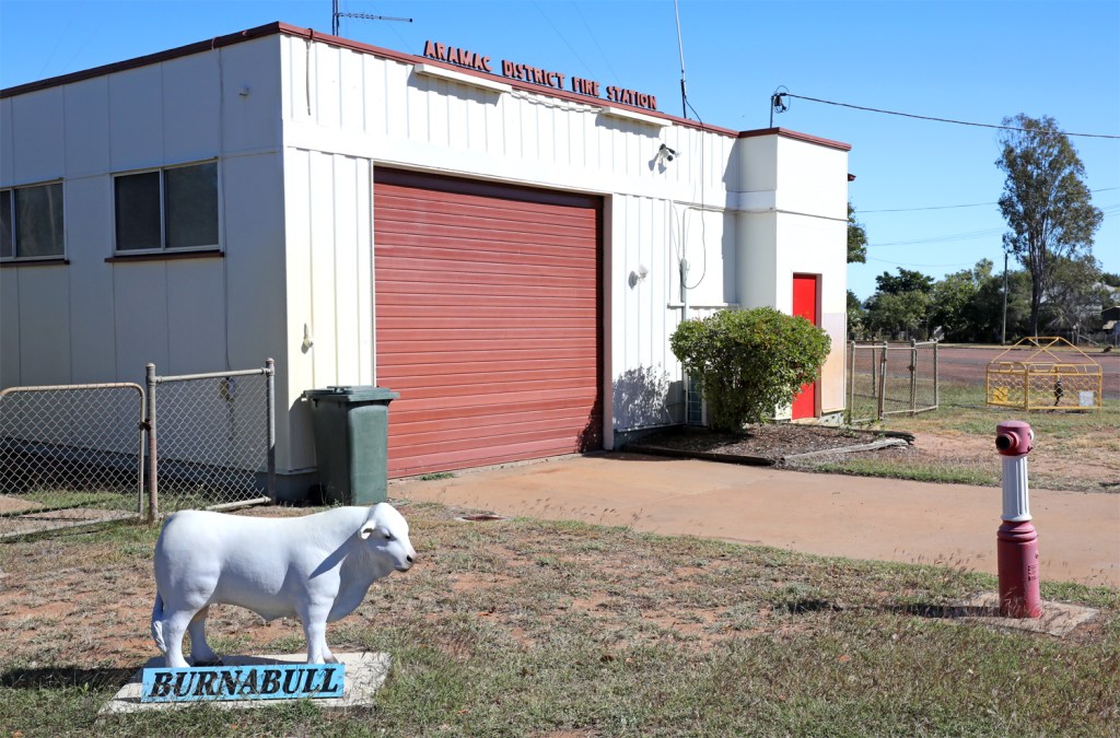 Twelve smaller white bulls (Aramac’s Adorabulls) are placed around town at strategic points including Readabull at the Library, Bankabull at the bank, Postabull at the Post Office and the Burnabull above at the Fire Station.
